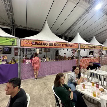 As barracas de comidas típicas foram operadas por entidades parceiras da cidade. A ACCTN cedeu estrutura e espaço para que essas organizações pudessem gerar renda e fortalecer suas ações sociais. Milho verde, tapioca, bolos, caldos e outras receitas compuseram a experiência do público, com alta rotatividade ao longo de todo o fim de semana.