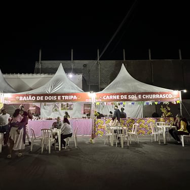 As barracas de comidas típicas foram operadas por entidades locais parceiras, que utilizaram a estrutura cedida pela ACCTN para arrecadar fundos e fortalecer suas ações sociais. O público encontrou milho verde, tapioca, bolos, caldos e outras delícias, em um ambiente familiar e sinalizado.